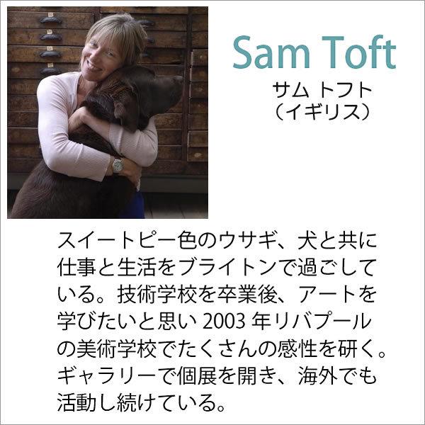 【作家】サム トフト画(イギリス・女性) スイートピー色のウサギ・犬と共に仕事と生活をブライントンで過ごしている。 技術学校を卒業後、アートを学びたいと思い、2003年リバプールの美術学校でたくさんの感性を磨いた。ギャラリーで個展を開き、海外でも活動し続けている。