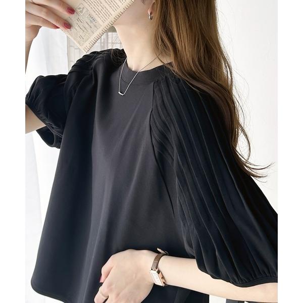 商品名:カジュアルな中にも上品さを。綿100% 袖山タックラグラン半袖Tシャツ