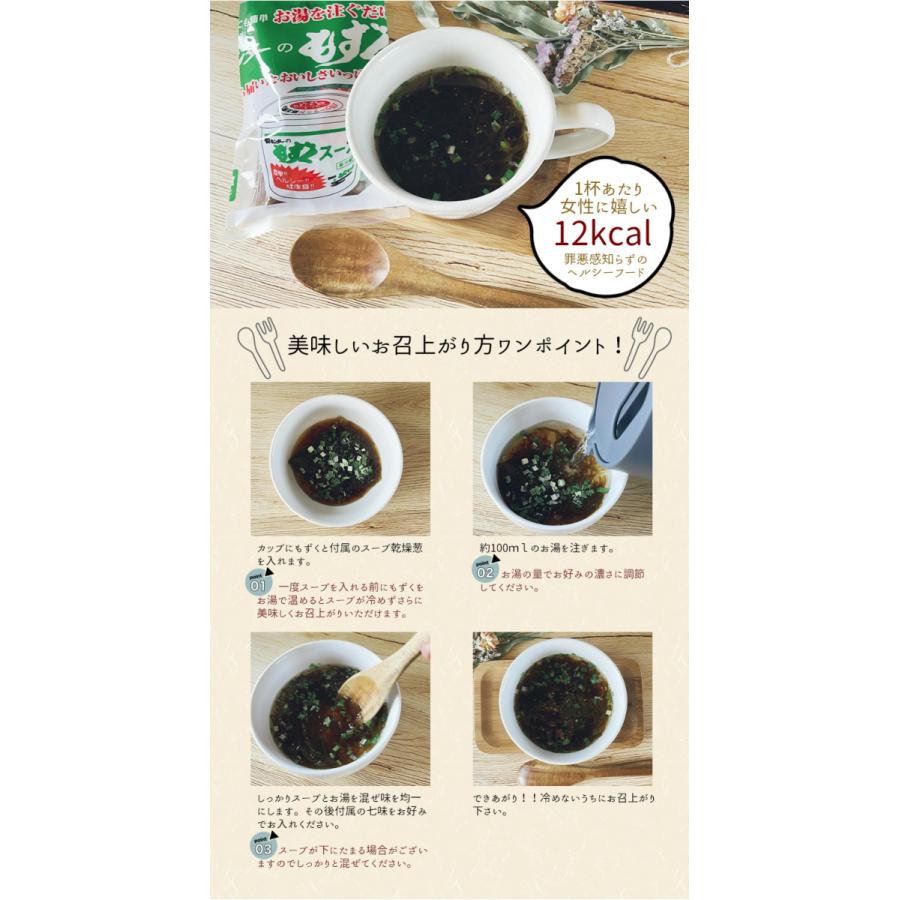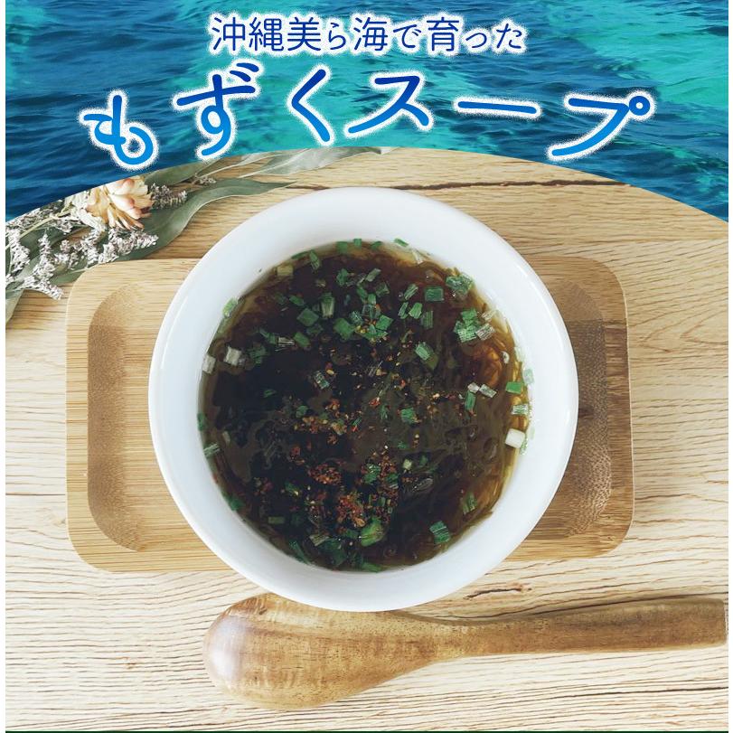 絶妙な味付けのスープに、こだわりの処理による沖縄県産のプルプルもずくの、永年の積み重ねが産む「味と食感のバランス」は病み付きになります。