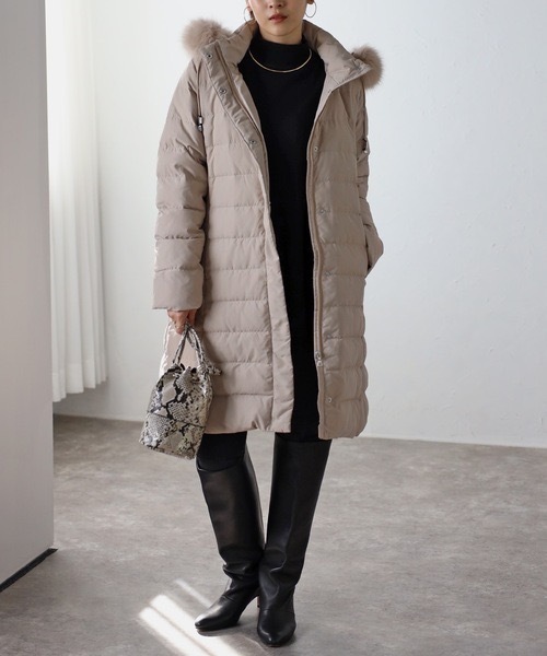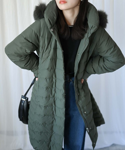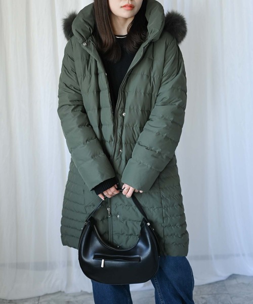 キーワード:ダウンコート ダウンジャケット レディース ジップ フード取り外し リアルファー ロング丈 無地