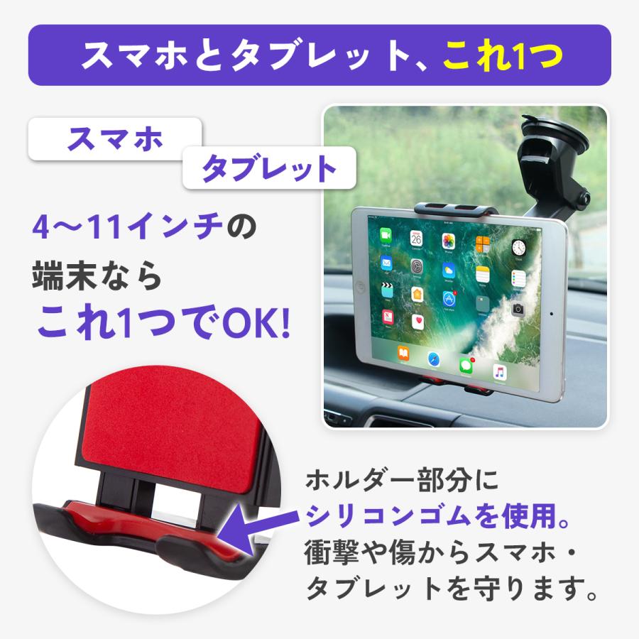 タブレットとスマホ両方に対応した車載ホルダーです。