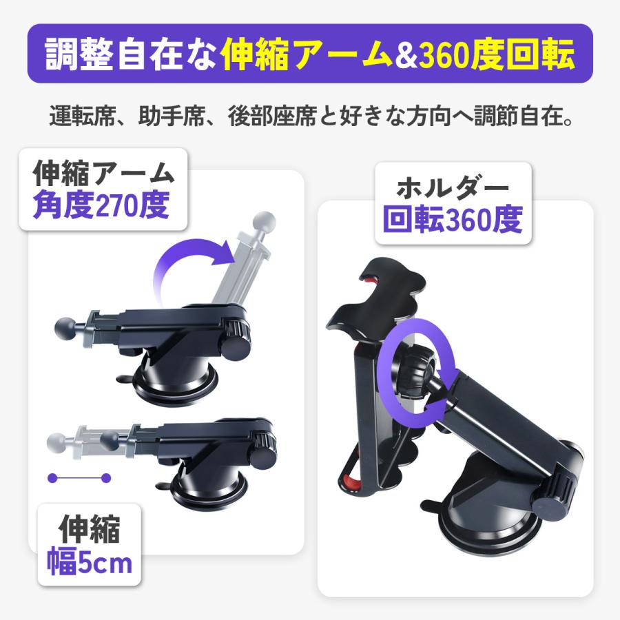 商品名:タブレットスタンド 車 タブレットホルダー 車載ホルダー アーム 吸盤 ipad iphone 360度 回転 ダッシュボード 10インチ