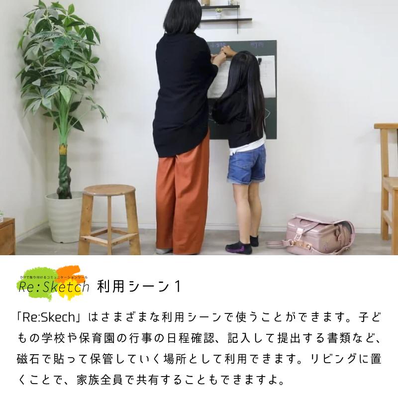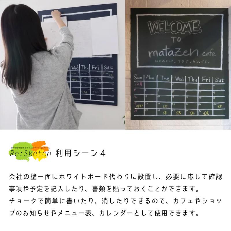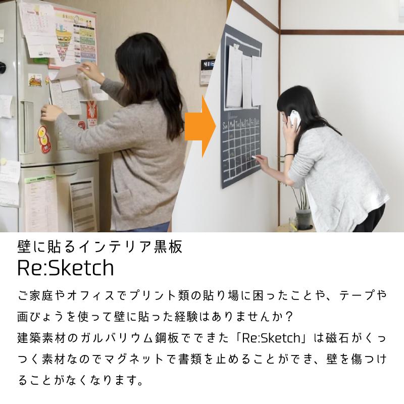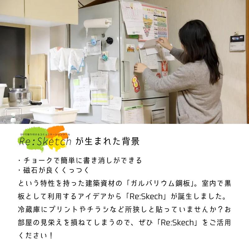 建築素材であるガルバリウム鋼板でできたRe:Sketchは錆びにくく丈夫で長持ち。チョークで描いたり消したり、磁石で書類を止めることができます。