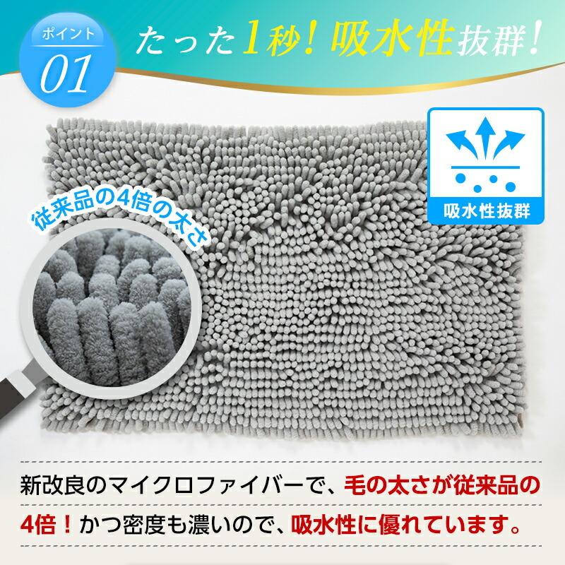 驚異の1秒吸水力を実現した洗える極太マイクロファイバーバスマット