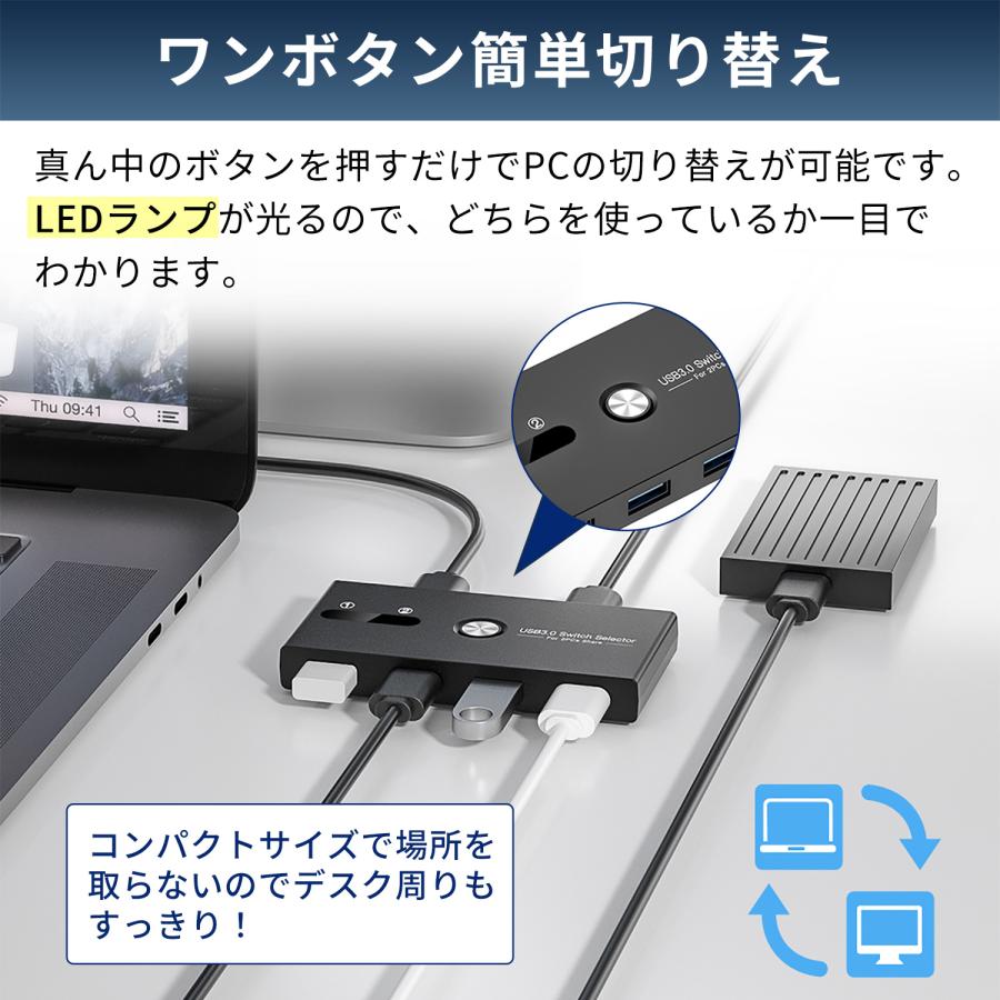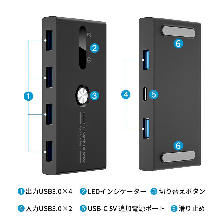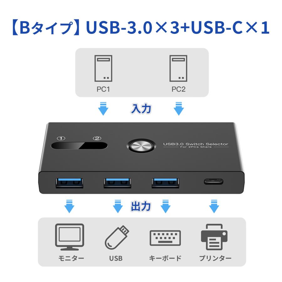 適格請求書発行可 切替器 USB3.0 USB-C 高速転送 Type-C 両対応 切り替え usb切替器 プラグ 切替 PC2台用 プリンタ マウス キーボード パソコン ハブ 手動切替器 プリンタ 切り替え機 USBケーブル2 1.5m パソコン2台用 USB機器4 ua0001