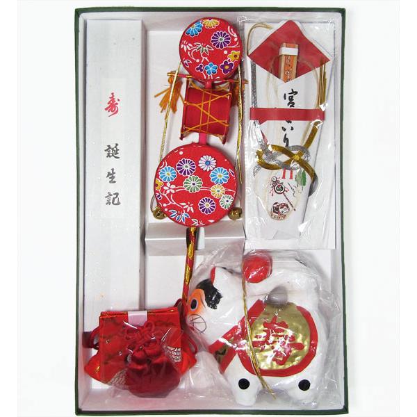 セット内容(箱入り)犬張り子・でんでん太鼓・扇子・誕生記・お守り★でんでん太鼓の柄や扇子飾りの色味が変わる場合がございます。★光の加減により写真の色と商品の色が異なることがあります。