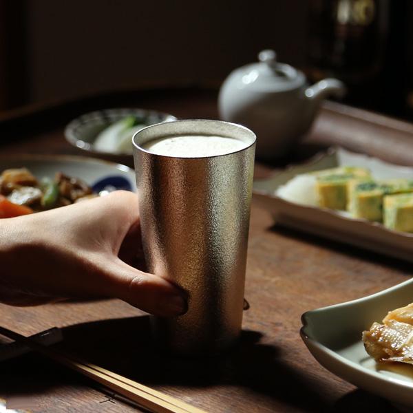 キンキンに器が冷えることが特徴の錫のカップは、冷たい飲み物と相性抜群。