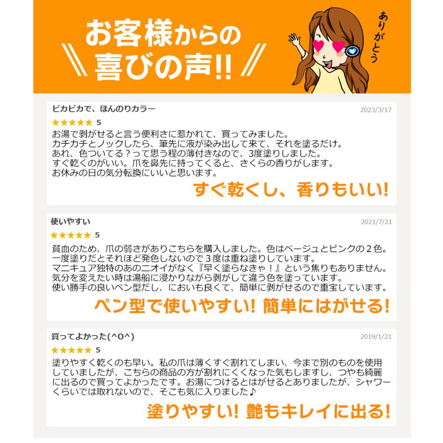 面倒なネイル落としも簡単。爪に負担のかかる、除光液がいらない、お湯で落ちるマニキュアです。