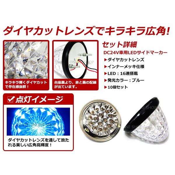24v専用 クリスタルレンズ LEDサイドマーカー 10個入り