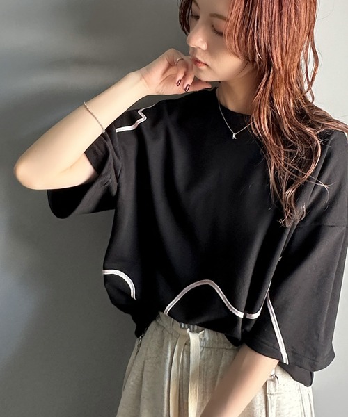 キーワード:トレーナー スウェット レディース パイル バックプリント プリント ライン リボン ロゴ ワンポイント 刺繍 七分袖 五分袖 無地 WEB限定 ストリート ピクニック レジャー プチプラ 公園 春 大人カジュアル 定番
