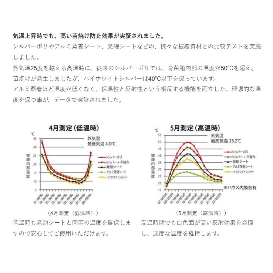 ●ハイホワイト(白色面)の高い反射性で苗焼け防止効果を大幅に改善