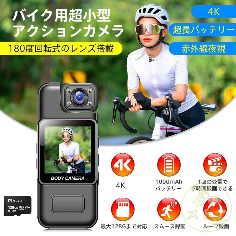 アクションカメラ 小型 会議用 ミニ 自転車用ドライブレコーダー 防犯カメラ クリップ付き スポーツカメラ アルミ合金バイク バイク用 赤外線夜視 手ぶれ補正
