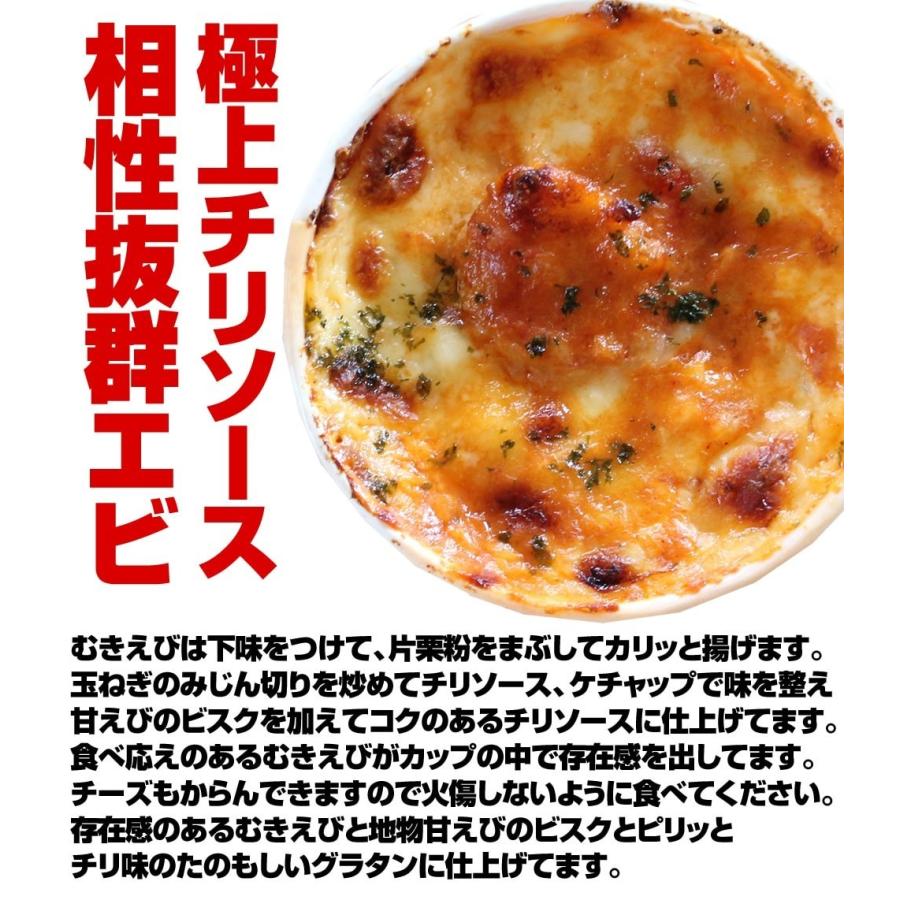 むきえび、玉ねぎ、甘えびビスクソース、チリソース、 ケチャップ、マカロニ、酒、こしょう、にんにく、卵、 片栗粉、牛乳、シェリー酒、強力粉、ナチュラルチーズ、 粉チーズ、パセリ、バター、薄力粉