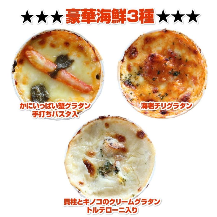 貝柱、しめじ、マッシュルーム、松茸、根こんぶダシ、 バター、赤・黄パプリカ、ナチュラルチーズ、粉チーズ、牛乳、 強力粉、薄力粉、パセリ、ほうれん草、カッテージチーズ、 生クリーム、卵、塩、こしょう、白ワイン