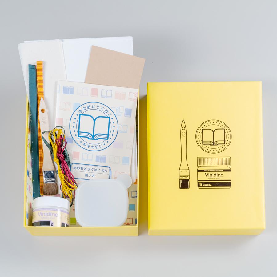 「本のおどうぐばこ のり」は、図書館でも自宅でも、場所を選ばず糊を使った本の簡易補修を習得できるキットです。