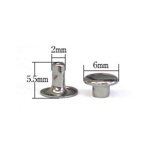 布や薄い革にお勧めの片面カシメです。カシメ足が、通常の小カシメのものよりも比較的短いため、取り付けるとカシメの頭が飛び出る、取り付ける対象が薄いものの場合にご検討ください。革や布の合計厚みが最大3.5mmまでの場合におすすめしています。カシメ頭(メス)は直径6mm。付属の足(オス)の長さは5.5mmです。