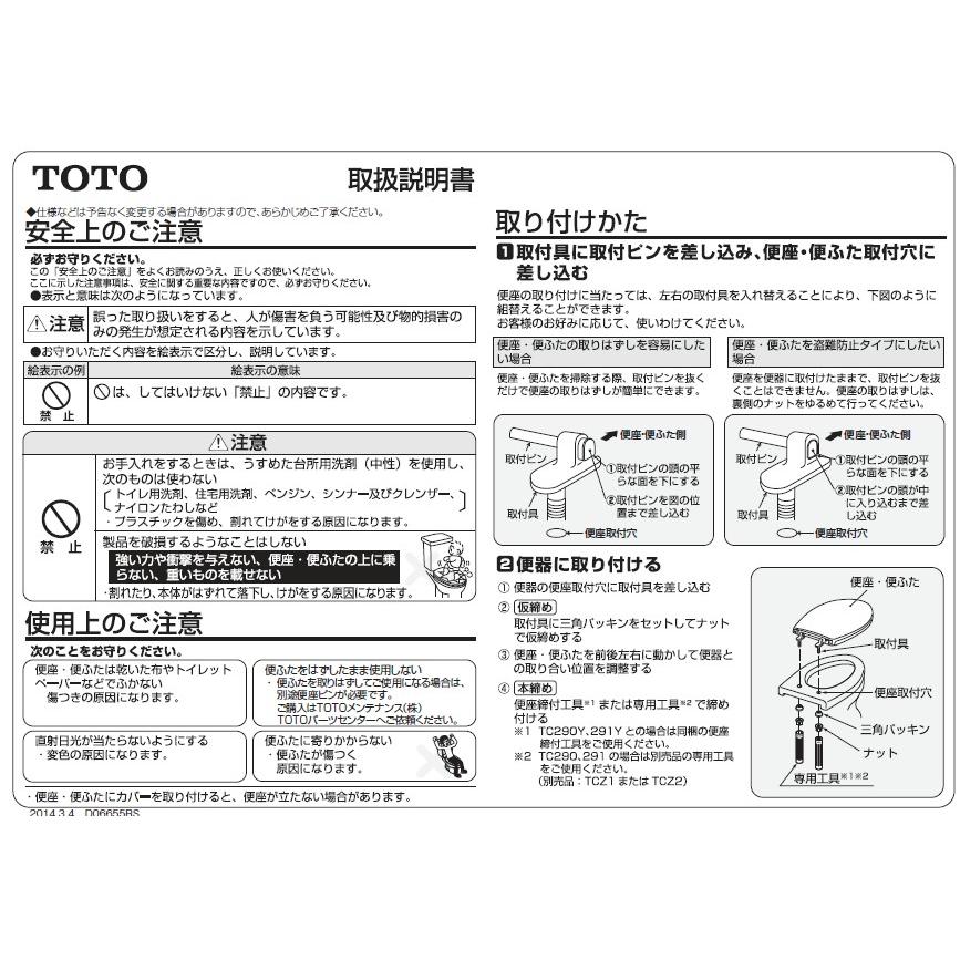 TOTO 便座・便ふた取替パーツ 前丸便座(ふた付) レギュラーサイズ(標準) 純正部品 TC290