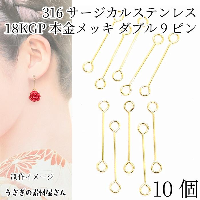 18KGP金鍍金のステンレスダブル9ピンは、細めタイプで、作品に繊細な美しさをプラスします☆