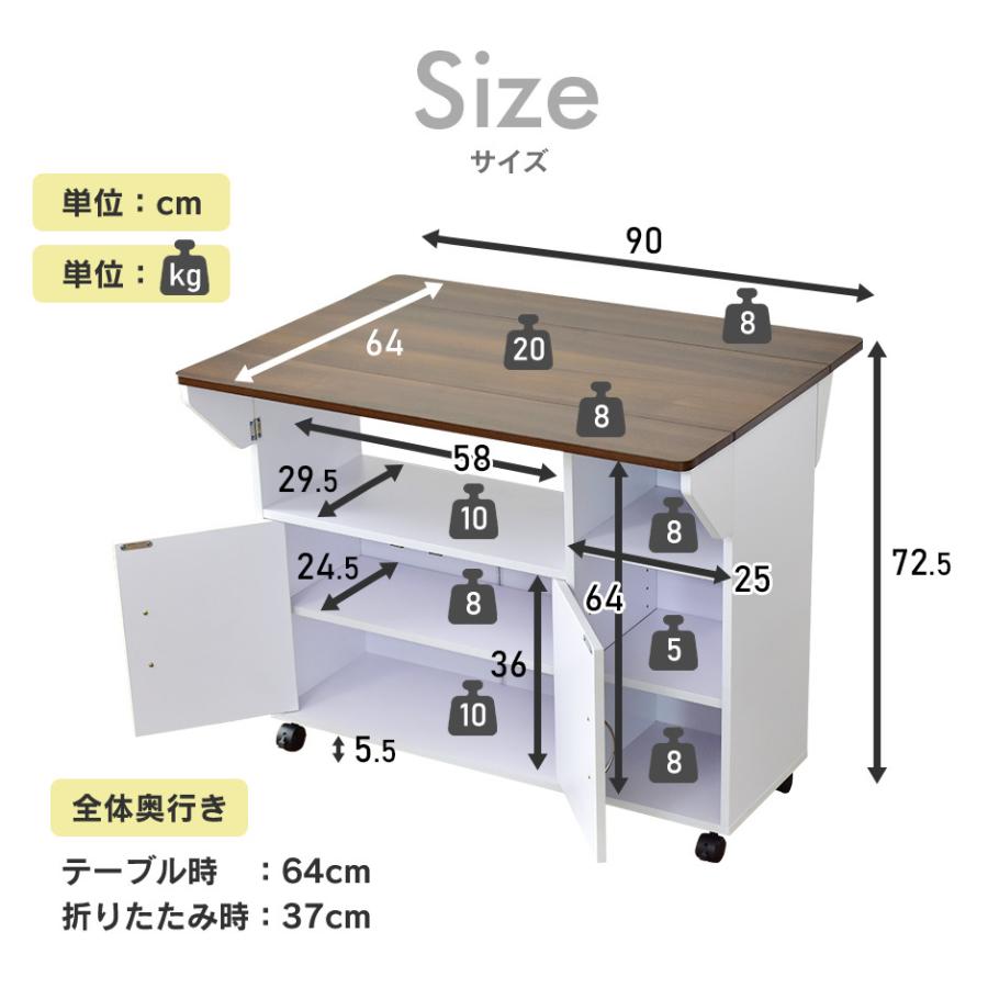本体:幅90×奥行64(37〜64)×高さ72.5(cm)