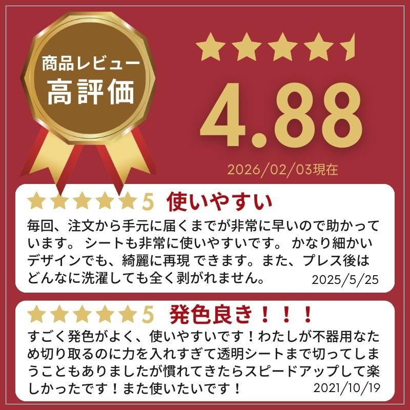 ●低温(130〜140℃)短時間(5秒)1回プレスでプリントできる為ポリ生地へのテカリや昇華移染も起きにくくなっており、作業効率が非常に高い商品です。