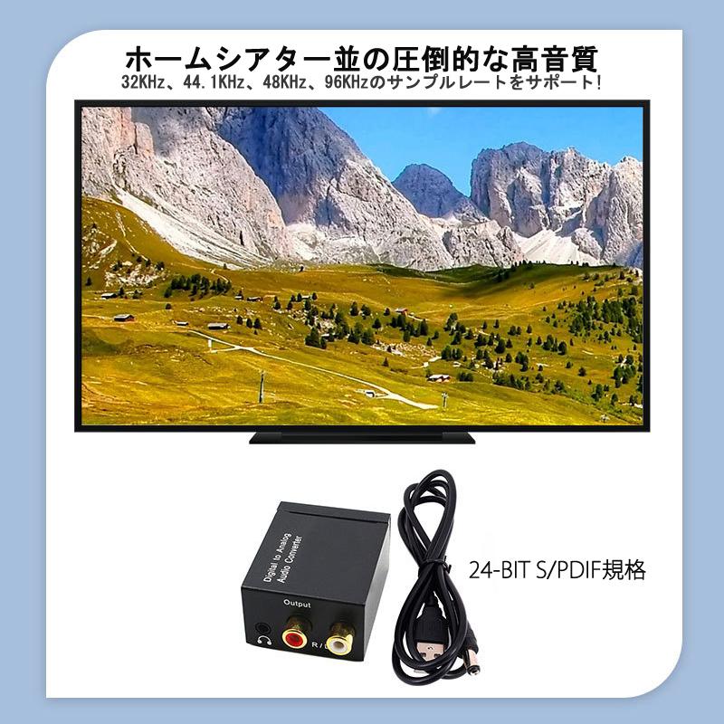 光/同軸デジタルから入力される音声信号をRCAアナログまたは3.5mmジャックに変換できます。