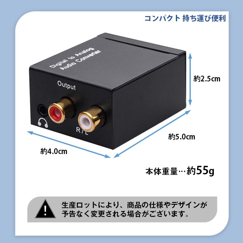 機能:同軸またはTOSLINKデジタルオーディオ信号をアナログL/Rオーディオに変換,