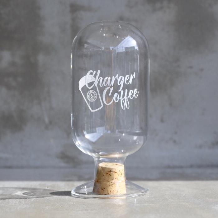 当店で使用しているオリジナルキャニスターボトル。大勢のお客様からリクエスト頂き製品として登場です!ボトルセンターにオリジナルロゴを白プリント。今までになかったボトルタイプのガラスキャニスターです。シンプルデザインで、珈琲豆はもちろんスパイス、マカロニ、ドライフルーツ、チョコ等、入れた素材の量や常態を360度確認できます。ボトルは薄い耐熱ガラスを使い軽量感とスタリッシュさを表現。栓はナチュラルなコルク。直径約2.8cmの口にはめ込むだけの扱いやすい構造です。従来のキャニスターとは違い収納口が下についており、パッと見た瞬間からおしゃれな雰囲気を放つ存在感。今までにありそうでなかったこなれたキッチン周りをコーディネートしてくれます。単品での使用はもちろん、3つ4つ並べると中に入れた素材の色が多彩に広がり自分好みのキッチン空間を作れます。とてもおすすめな当店オリジナルのガラスキャニスターです。発送時には専用のホワイトボックスにお入れ致します。※セットではなく1点販売です。