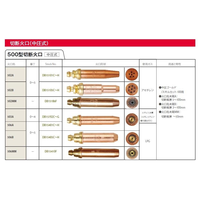 小池酸素 中圧切断器用火口(アセチレン用)です。中圧ゴールド・スキルカット100用となります。切断板厚によって火口番号をお選びください。火口番号0:切断板厚〜5mm火口番号1:切断板厚3〜15mm火口番号2:切断板厚5〜20mm火口番号3:切断板厚10〜50mm火口番号4:切断板厚40〜80mm火口番号5:切断板厚60〜100mm