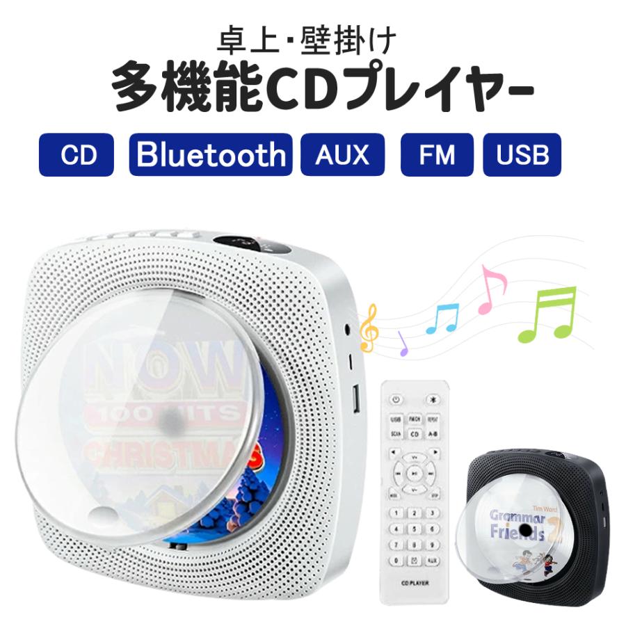 CDプレーヤー ポータブル 1年保証 USB bluetooth FM ラジオ 持ち運び コンパクト 高音質 卓上 壁掛け 音楽 ワイヤレスイヤホン でも 有線 でも再生可