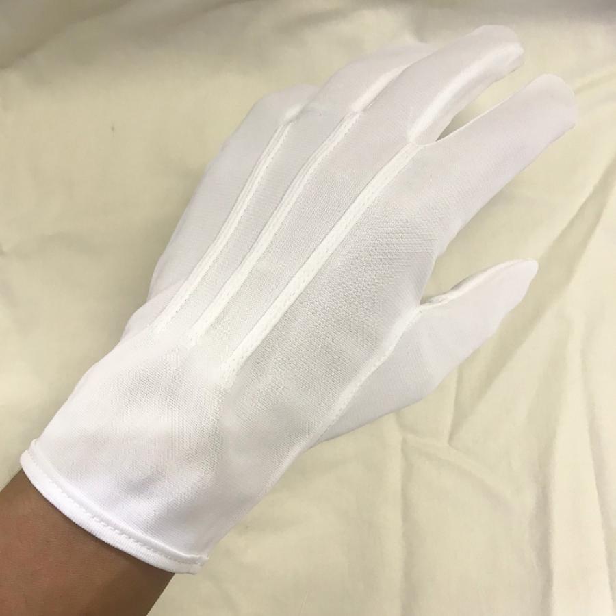 【特徴】フォーマルな場面で使用する礼装用の100%ナイロン製のマチ付き白手袋です。ナイロン製なので、綿製品に比べて毛羽立ちが少ないです。用途:礼装用(紳士用)、運転用、警察官、ガードマン、式典、タクシー運転手など晒(さらし)が非常に美しく、丈夫で汚れも落ちやすい。【サイズバリエーション】M/L/LL【品質表示】素材:ナイロン100%(東レ40D)ダブルトリコット編みマチ:マチ付き製造国:日本袖口止め処理:ホック付き