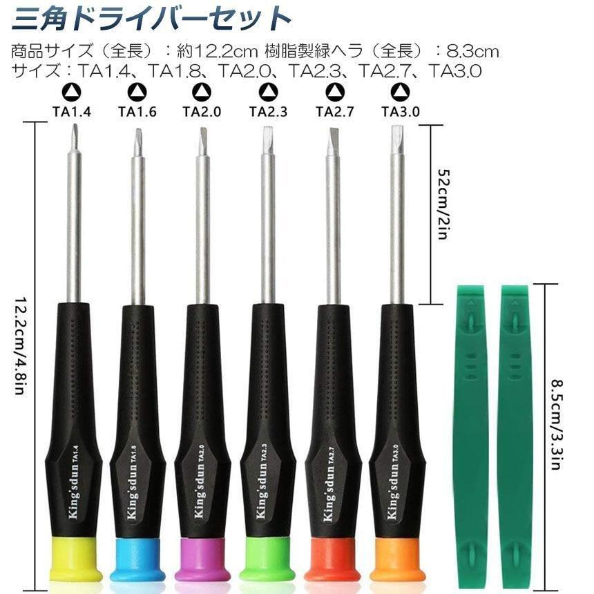 【サイズ】商品サイズ(全長):約12.2cm 樹脂製緑ヘラ(全長):8.3cm 三角ドライバー6サイズ:TA1.4、TA1.8、TA2.0、TA2.3、TA2.7、TA3.0