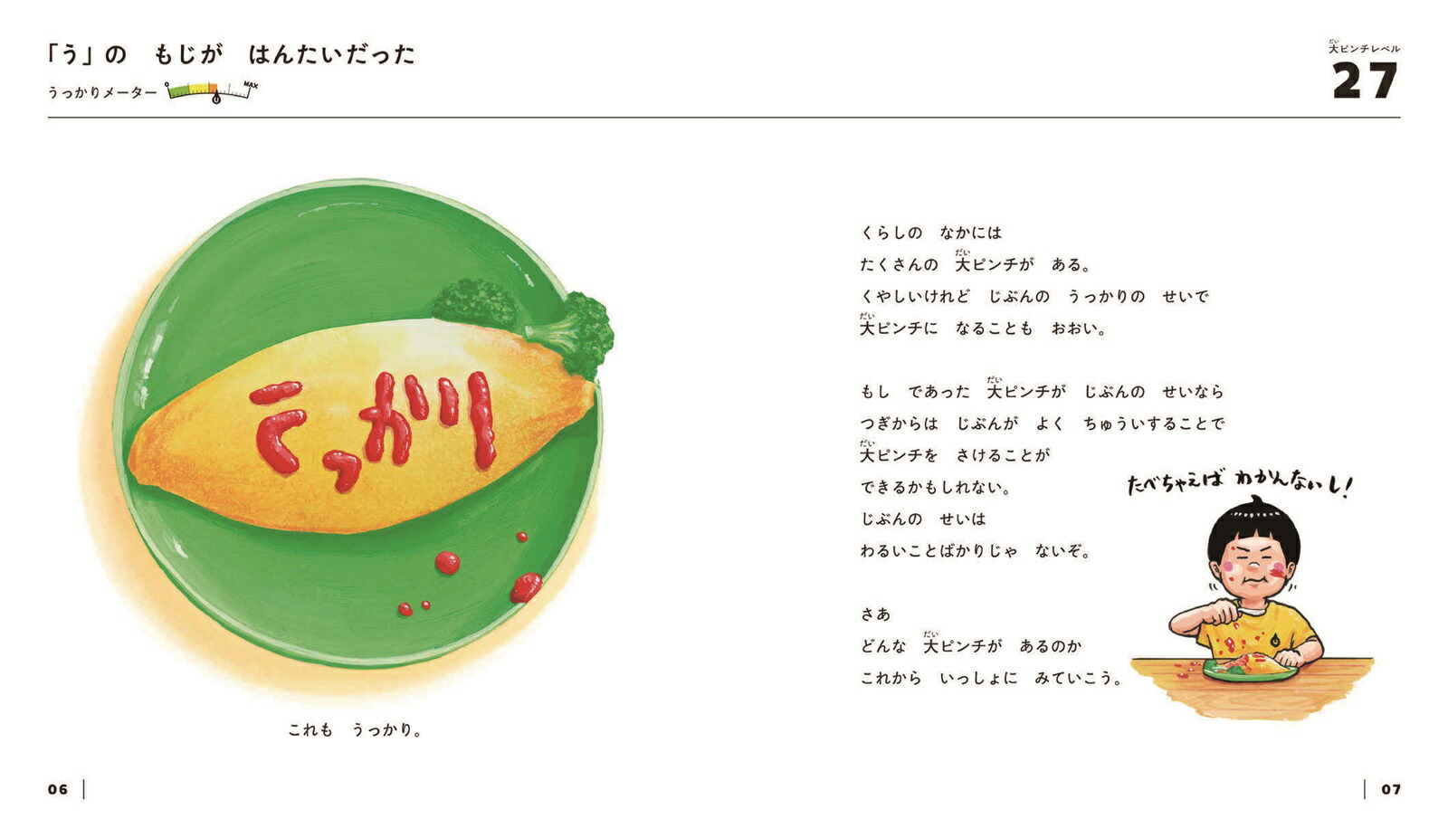 シリーズの中で今回が一番共感度高かったです…!ケチャップの蓋しめそびれで飛ばす、まさに先日似たようなことがあり(ドレッシングの蓋が閉まっておらず、振った瞬間飛び散った)、案の定子供から「これママじゃん!」と嬉々として指摘されました。笑また、子供自身も「今日、傘がおちょこになった!これだよ!」と該当ページを見せに来てくれたり。うっかりメーターもなかなかお気に入りです。日常で早速採用し、「今のはうっかりメーター紫くらいだったな…」と分析しするなどしていて、見てるこちらも面白いです。(たちばなさん 30代・東京都 女の子6歳)【情報提供・絵本ナビ】