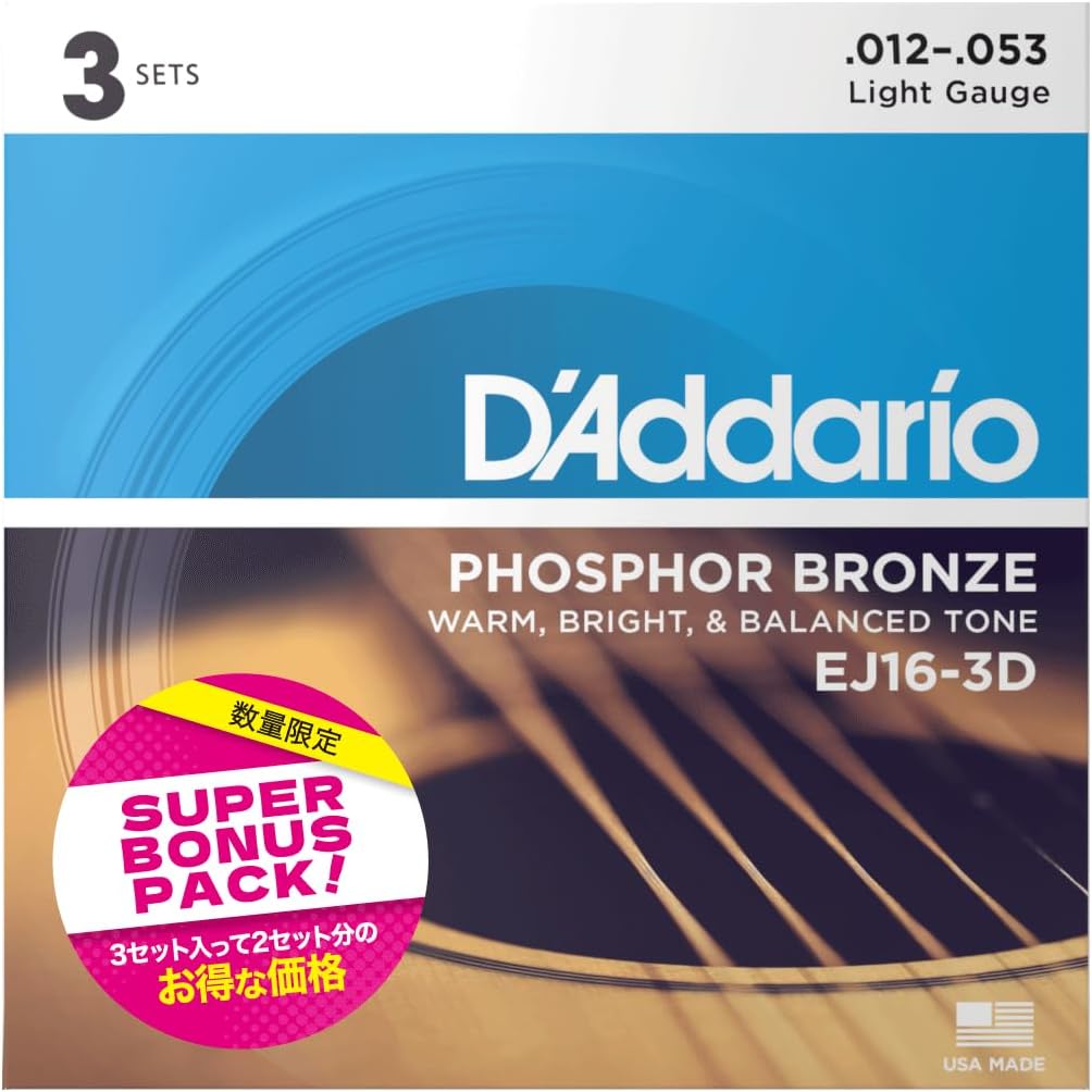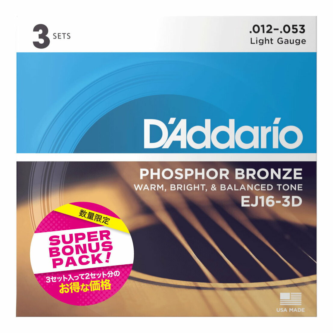<お得な3パックセット>D'Addario/ダダリオ EJ16-3DBPPHOSPHOR BRONZE Light 12-53【アコースティックギター弦】【お茶の水駅前店 小物フロア】2025 Winter Bonus Pack