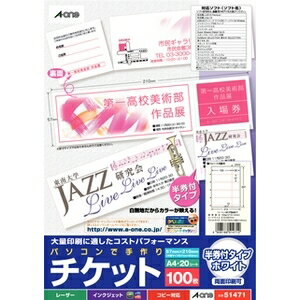 エーワン 51471 パソコンで手作りチケット ( A4判 / 5面 / 20シート ) ホワイト