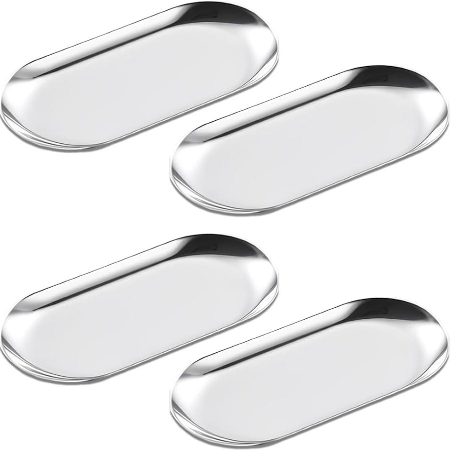 互換品 キャッシュトレイ コイントレー おしぼり置き 会計皿 釣銭 4枚セット シルバー (シルバー, 中)