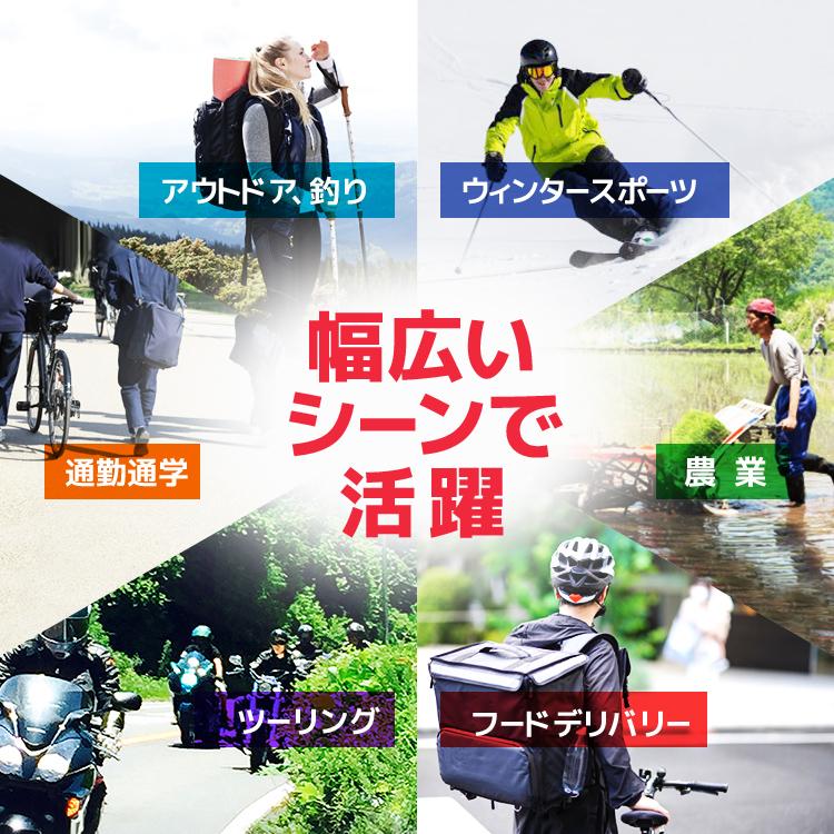 登山やウィンタースポーツはもちろん、釣り、サイクリング、バイクツーリング、農作業などアウトドアでご利用頂けます。