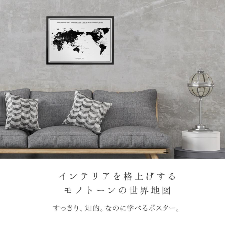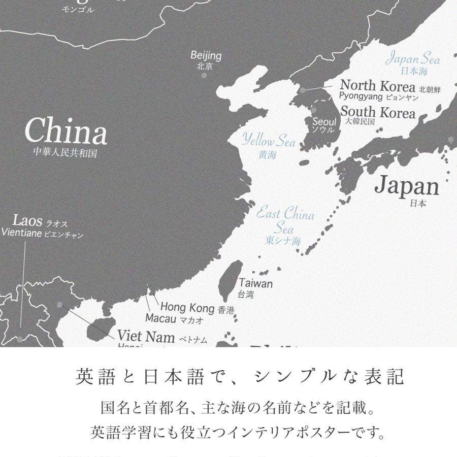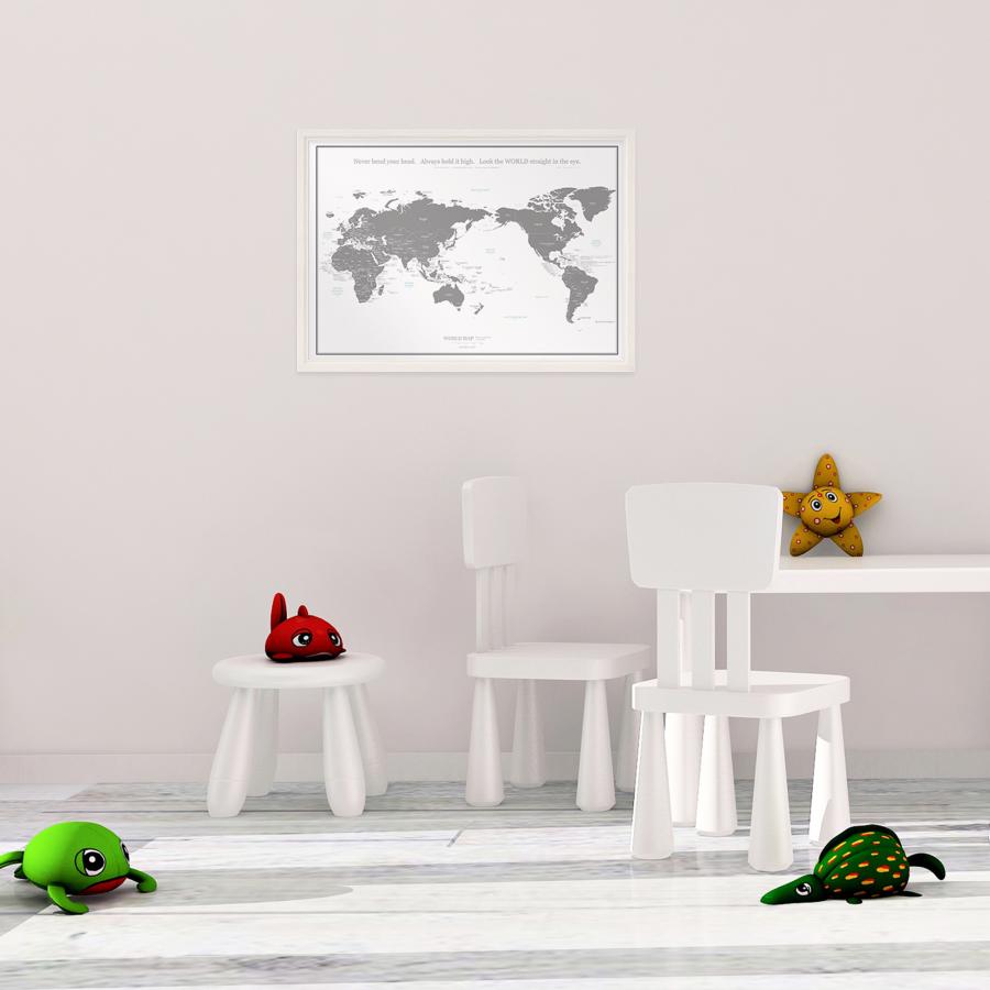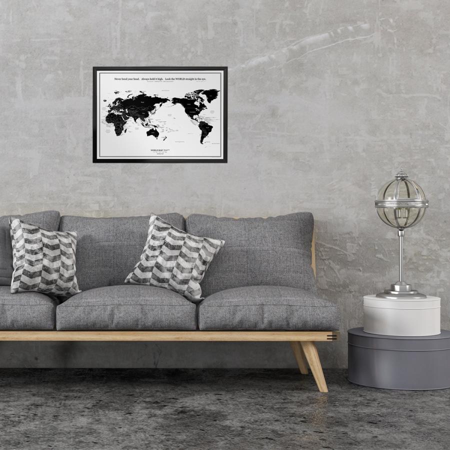 どんなインテリアにも馴染む、シンプルなモノトーンの世界地図。