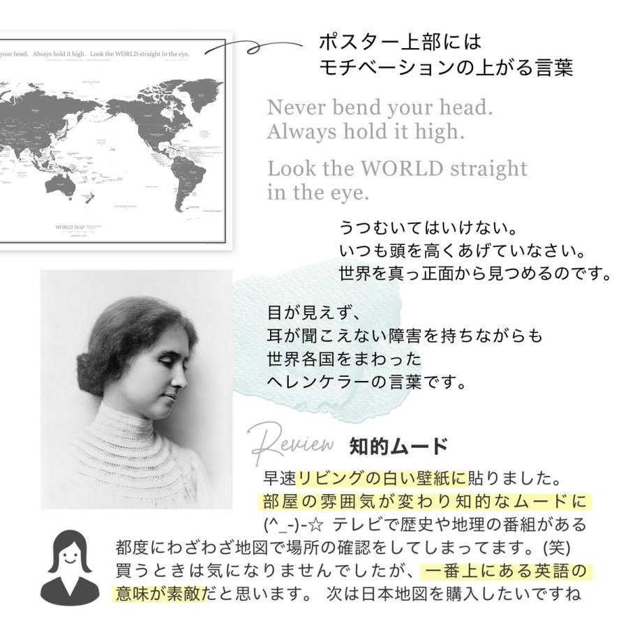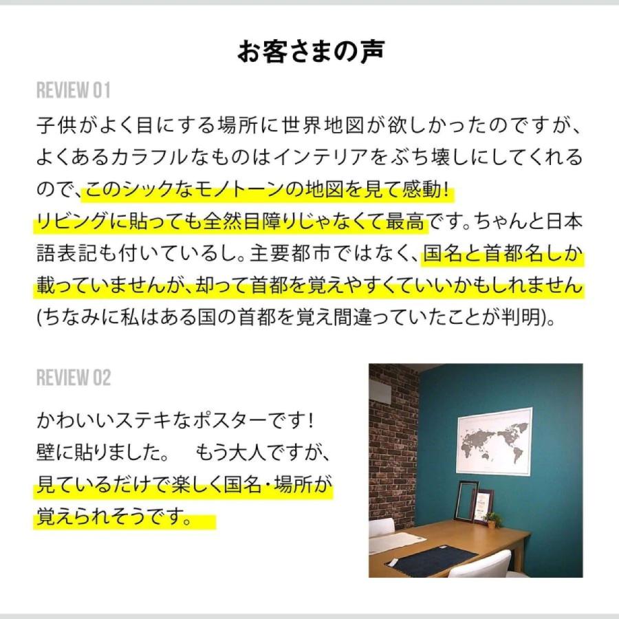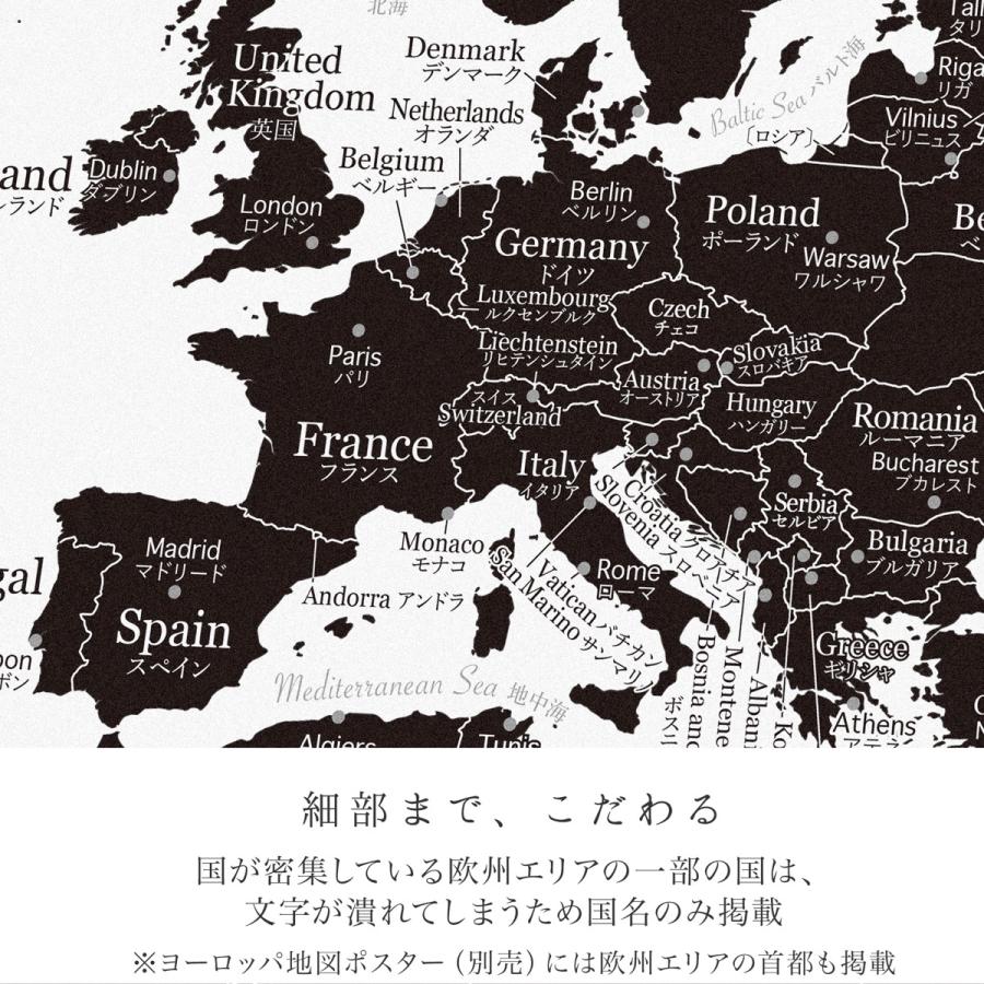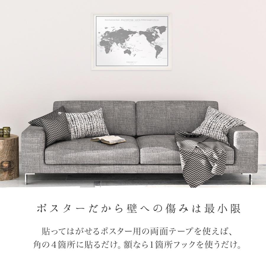どんなインテリアにも馴染む、シンプルなモノトーンの世界地図。