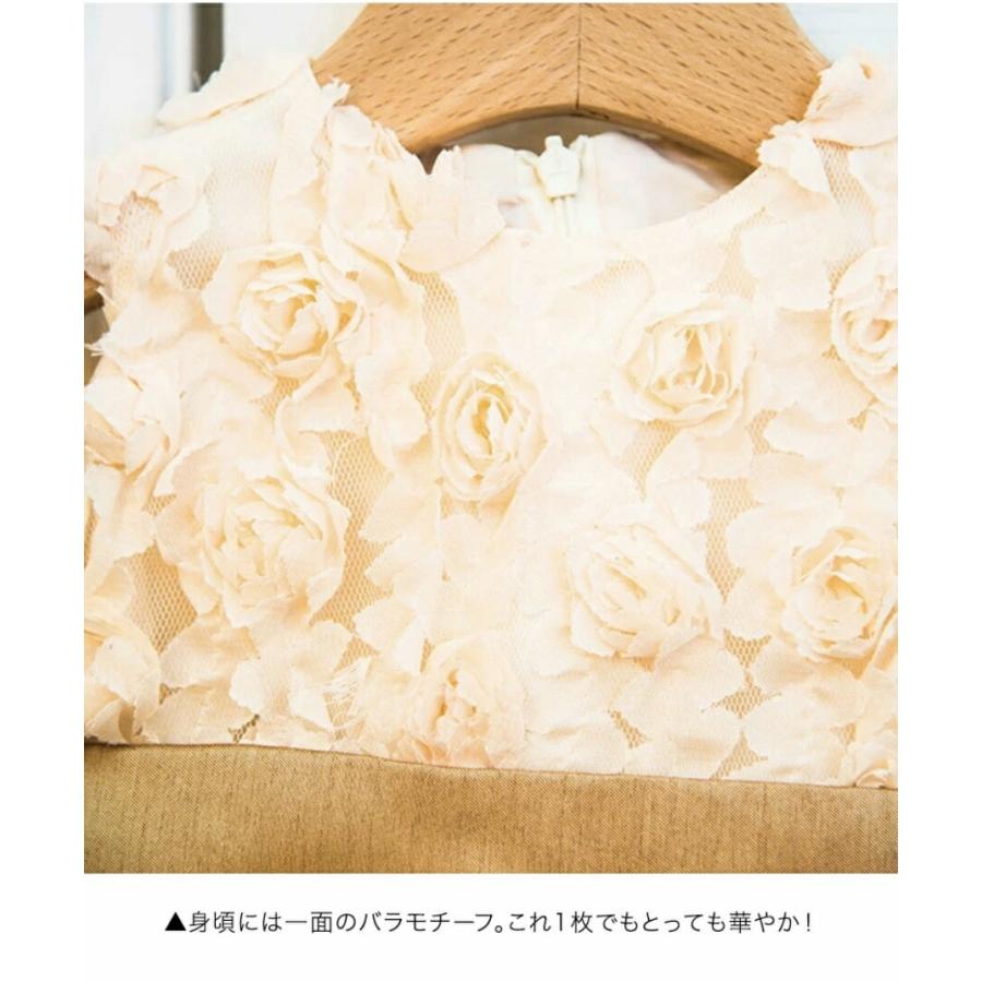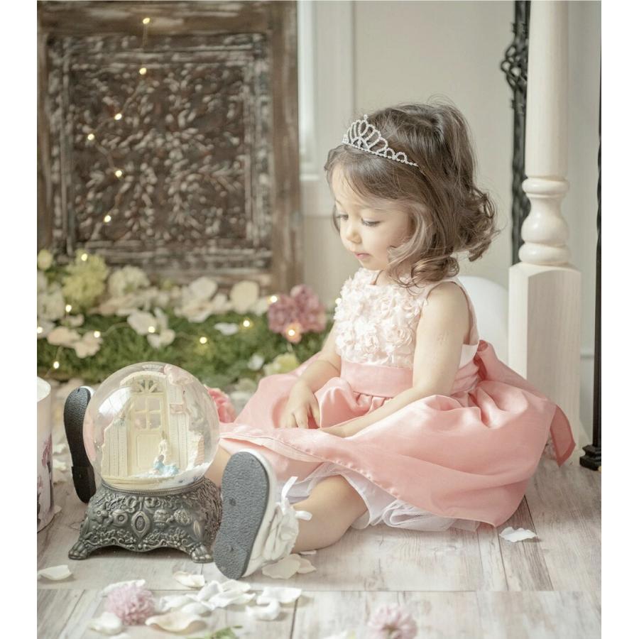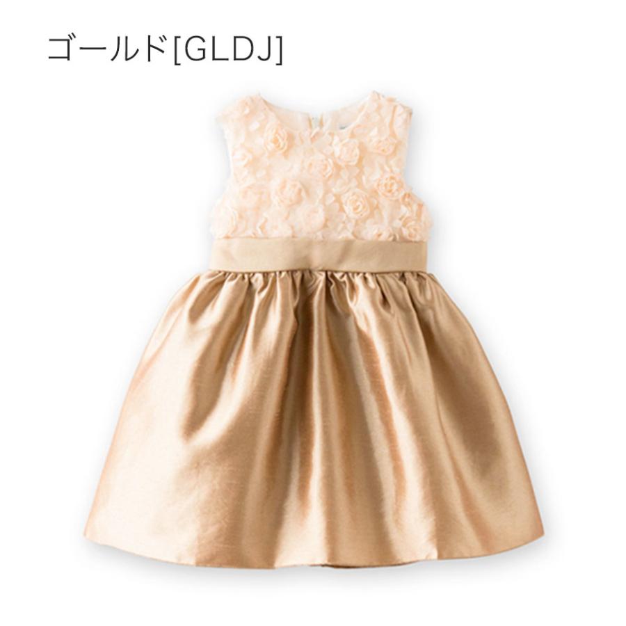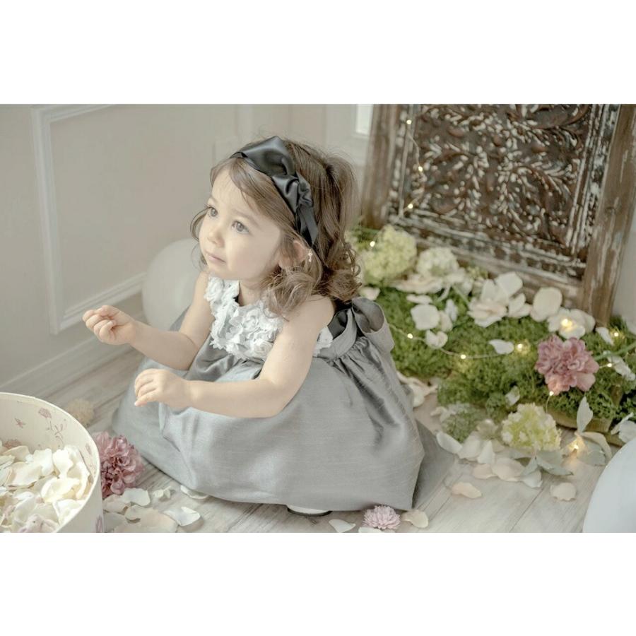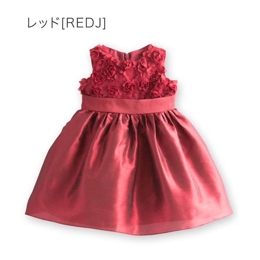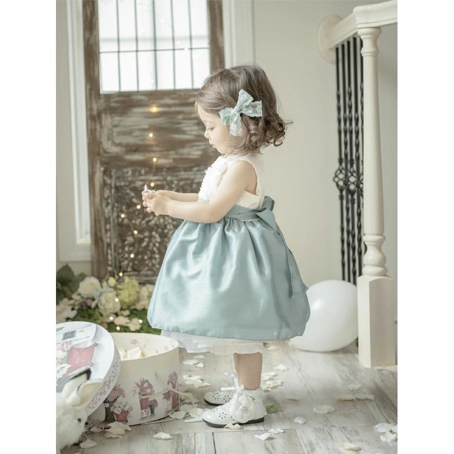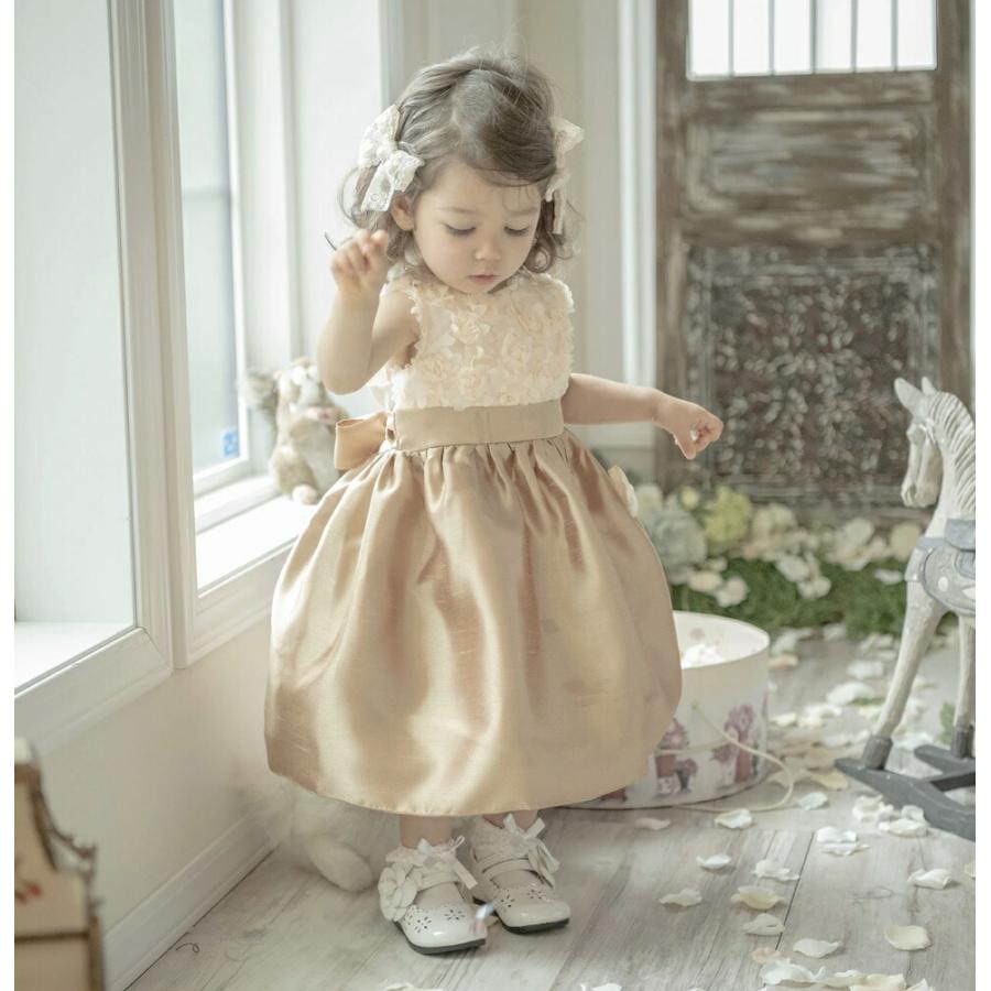 [ ベビードレス ふんわり バラモチーフシャンタン素材 上品 光沢感 大きなリボン 結婚式 発表会 お祝い 可愛い 華やか 80cm 90cm]