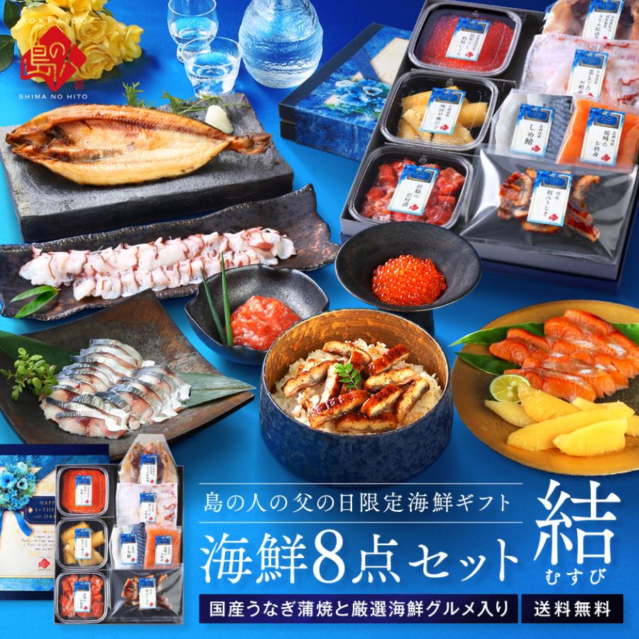 父の日 国産 うなぎ 入り 豪華海鮮8点セット 結むすび 鰻 ウナギ プレゼント ギフト 海鮮 高級 北海道 人気 限定 食べ物 40代 50代 60代 70代 2025 詰め合わせ