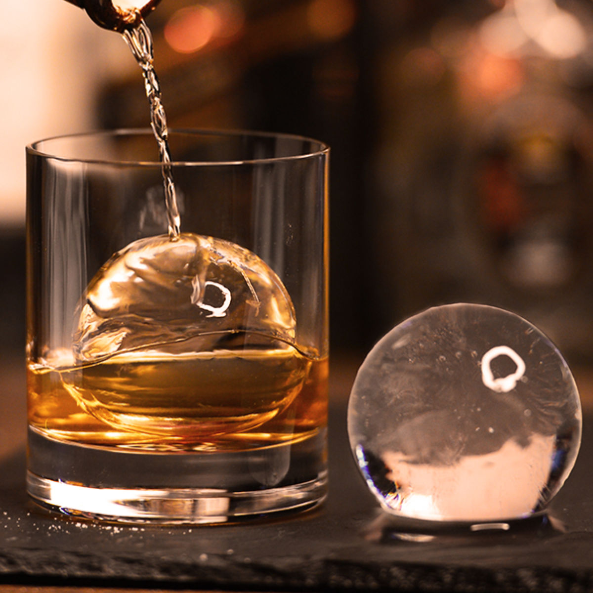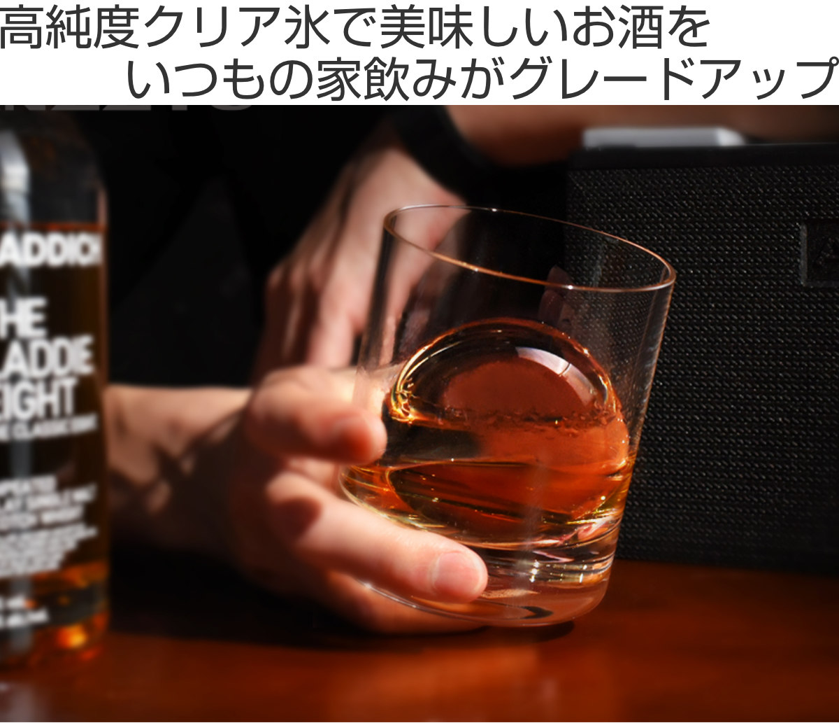 ●バーのような雰囲気で特別な家飲みを楽しめる丸氷メーカーです。