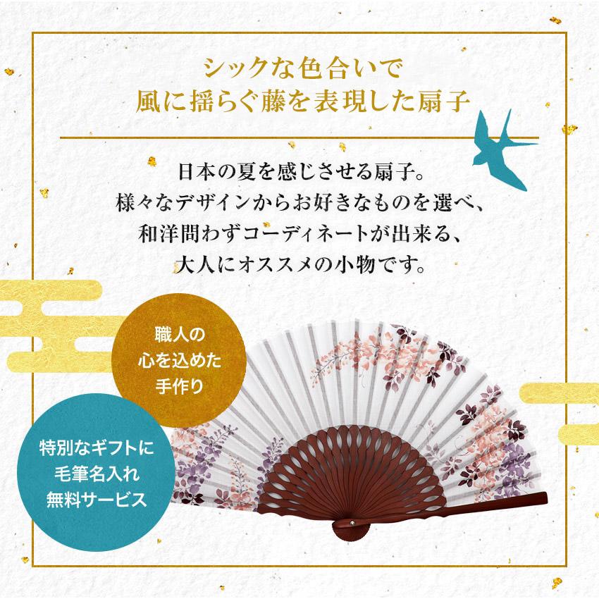 ポイント:白地に映える藤が爽やかで美しい。どこか日本の奥ゆかしさも感じられる扇子です♪カラー:薄紅・藤種別:扇子 女性用 扇子 レディース 扇子 名入れ扇面:綿100%扇骨:竹扇子袋:ポリエステル100%扇子を広げた時の大きさ(縦×横):約20×37cm箱(縦×横×高さ):紙箱 約11×27×2cm袋の長さ:約22cm