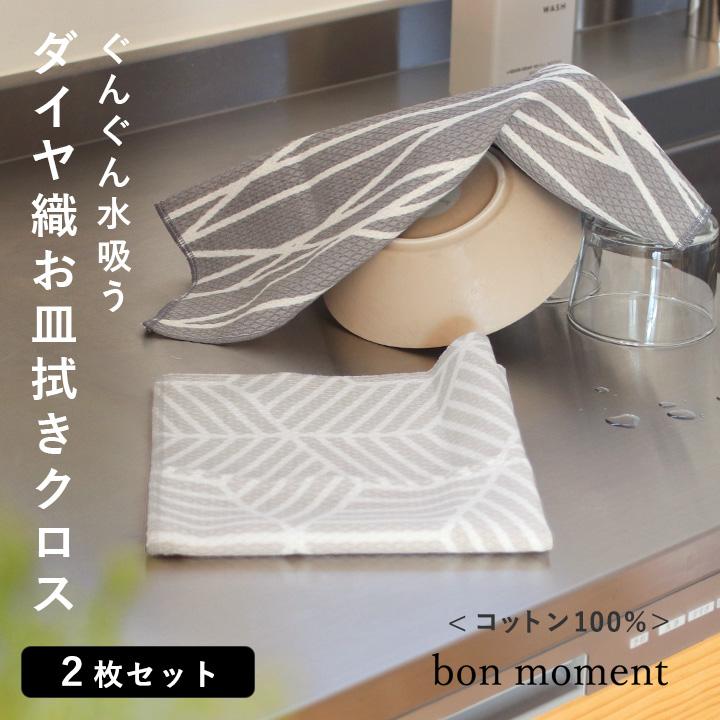 吸水力抜群のダイヤ織りクロス2枚セット。綿100%の素材は手肌にも優しい風合い。インテリアにこだわった、おしゃれなキッチンにも馴染んでくれる、北欧雑貨風の柄デザインです。