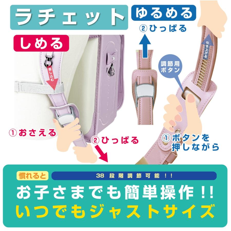 肩ベルトのラチェットで38段階で簡単に長さ調節ができ、ジャストに背負えます!!