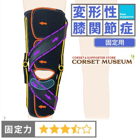 変形性膝関節症の専用膝サポーターです。補助ベルトで外側荷重にし、効果的に内側にかかる負担を軽減します。