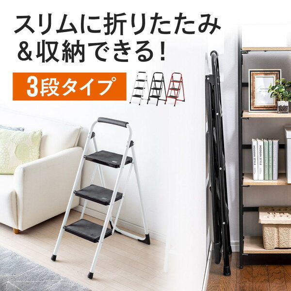 【楽天1位受賞】脚立 3段 折りたたみ 踏み台 室内 足場 滑り止め 持ち手 手すり付き 黒 ステップ台 ステップチェア おすすめ EZ15-SNCH047BK
