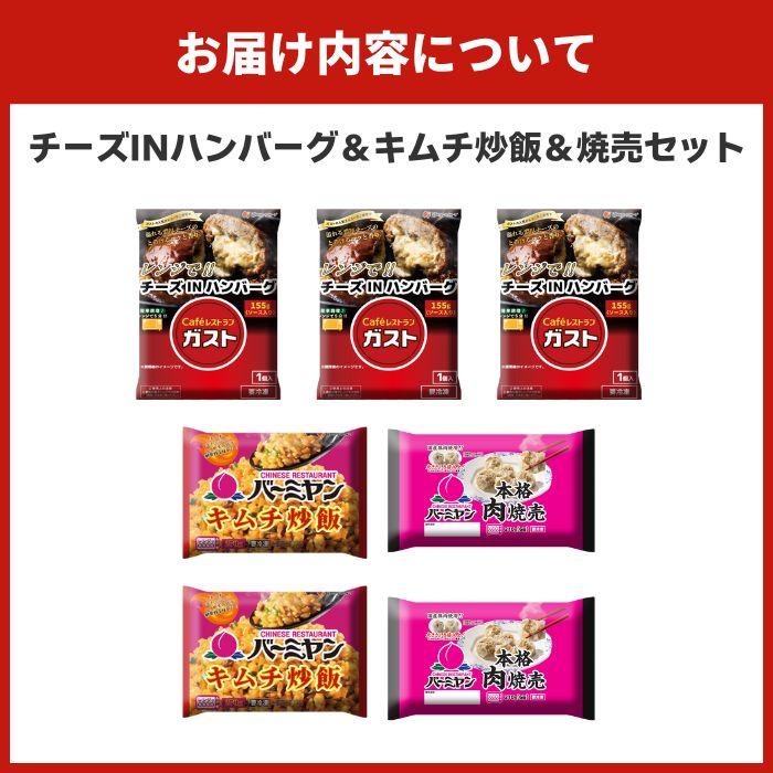 ガストで大人気のチーズINハンバーグとバーミヤンのキムチ炒飯&本格肉焼売をセットにしました!