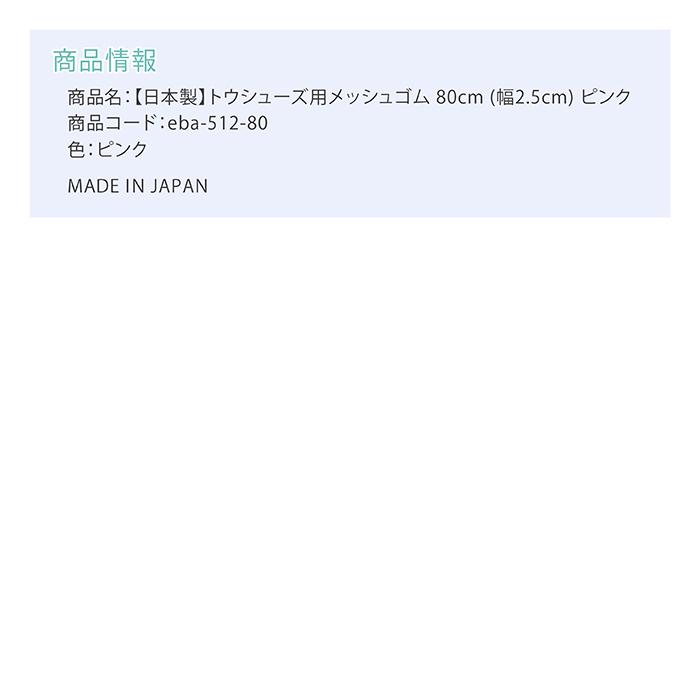 商品名:【日本製】トウシューズ用メッシュゴム 80cm (幅2.5cm) ピンク