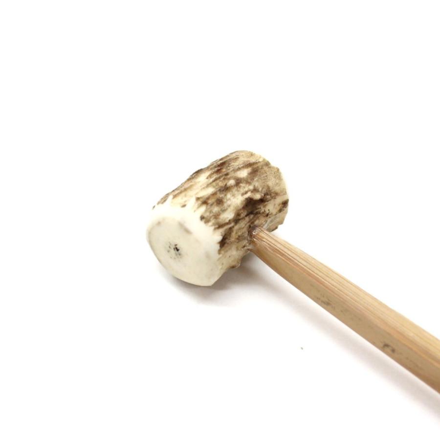 スリ鉦や当り鉦用のばちでございます。こちらの鹿ばちは柄の部分はしなるように竹を使用していて、角形となっております。また、頭の部分は鹿の角を加工しており、皮が付いております。●サイズ 長さ約35,5cm●素材 柄:竹 頭:鹿角●日本製★販売単位は1本です。ばち バチ 撞木 本鹿 しか 竹柄 たけえ 祭り お囃子 おはやし お祭り用品 すりかね すりがね すり鉦 スリ鉦 摺り鉦 あたりかね 当り鉦 ちゃんちき シャギリ チャンチキ 四助 与助 よすけ 日本製