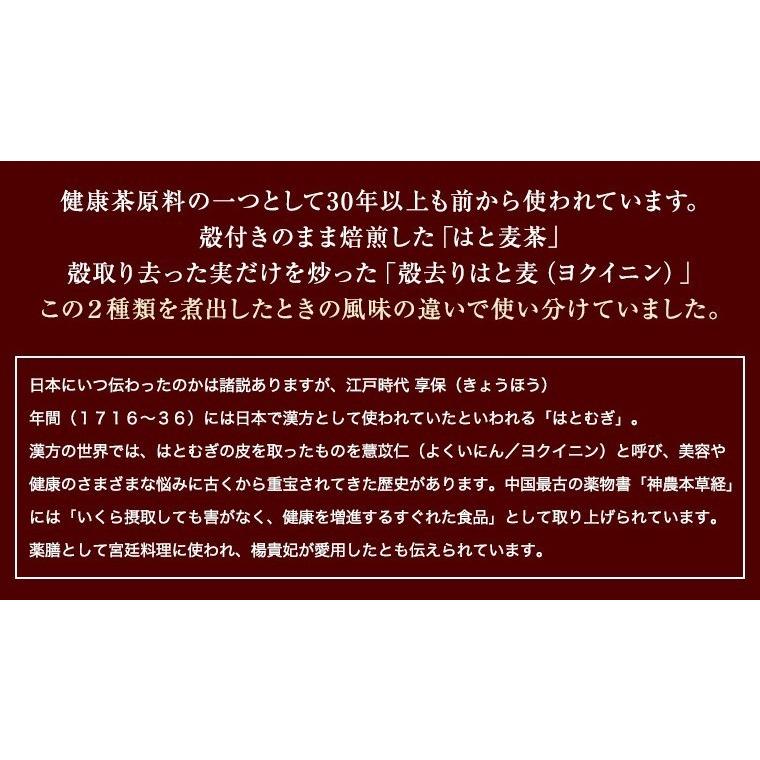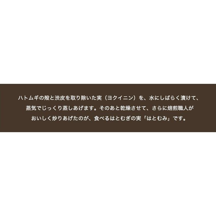 ハトムギの殻と渋皮を取り除いた実(ヨクイニン)を香ばしく焙煎しました。